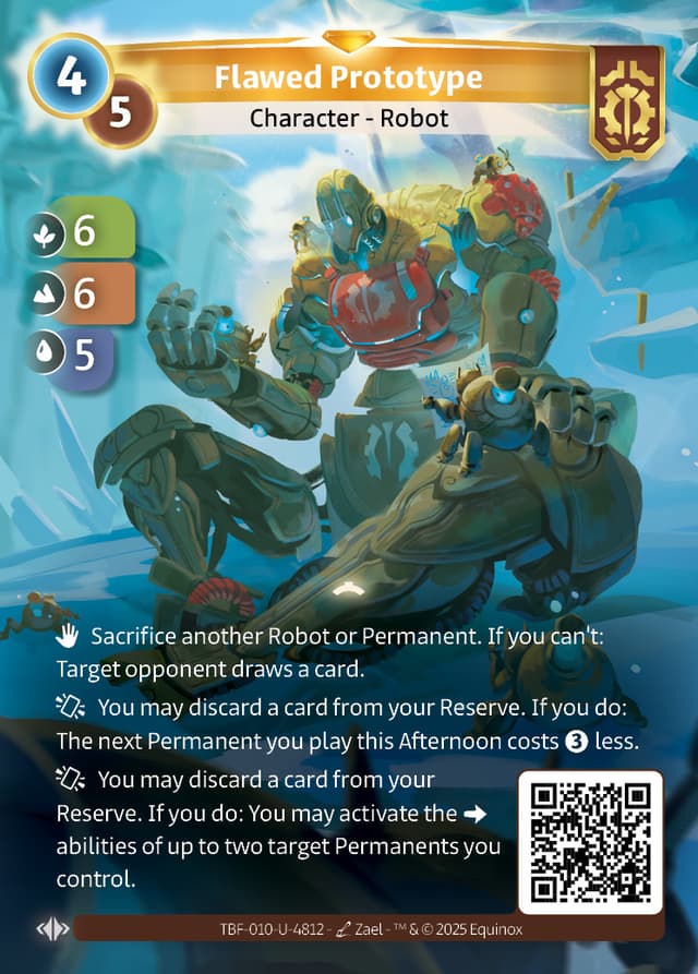 Sacrifice another Robot or Permanent. If you can't: Target opponent draws a card.