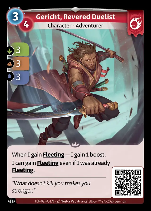 The Eidolon tries to get the measure of me, evaluating me in a slow back and forth from left to right, showing me only its profile. As for me, I'm not even on guard. My blade rests along my body. This is all part of the ritual, of the dueling game we play. As Tomoe told me: The fight always starts in the opponents' heads. Having claimed victory over each champion of the fencing schools, Gericht had established himself as the master of his discipline. He slowly unsheathes two of his sabers, then remains motionless. I try to read his mind, watching each of his tensing muscles to work out how he'll attack. Then, before I can understand how, he's already upon me, drawing circles with his weapons. It's his signature attack! Ember! I jump back at the very last moment, but he's already there to intercept me where I land. I survive only because of a reflex dodge, which forces me to jump to one side.