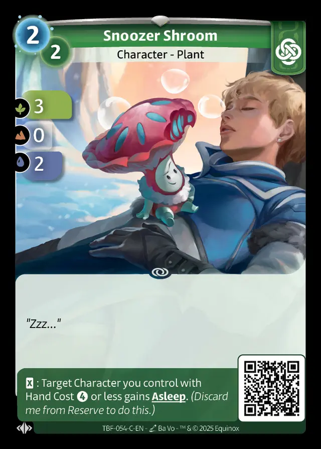 As I reach out to her shoulder to shake her awake, I notice something on her chest, gazing thoughtfully at her sleeping face. It's a mush. Well, a Snoozer Shroom to be precise. I quickly notice that a bit of its cap has been nibbled away. Well, I guess that explains the soldier's untimely nap. Another novice who didn't pay attention during their training about the dangers of the forest. Still, the mush's red cap with blue scales should have been an obvious warning. I borrow the recruit's waterproof gloves and pick up the little mushroom, which then offers me a bit of its cap. No thanks, little one, I just ate. And I know all about your narcotic properties. But I'll save it for later so I can make a soup that brings on a deep, refreshing sleep, like certain moms do for their overactive kids. In the meantime, I'll need to brew some herbal tea for the recruit, who'll likely wake up with a nasty cold… What was she doing out here all alone, anyway?