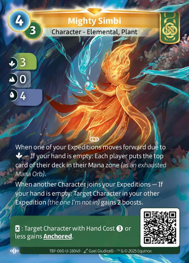 When one of your Expeditions moves forward due to — If your hand is empty: Each player puts the top card of their deck in their Mana zone (as an exhausted Mana Orb).