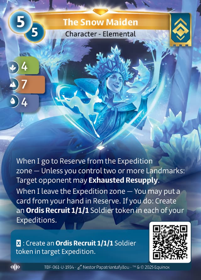 When I leave the Expedition zone — You may put a card from your hand in Reserve. If you do: Create an Ordis Recruit 1/1/1 Soldier token in each of your Expeditions.