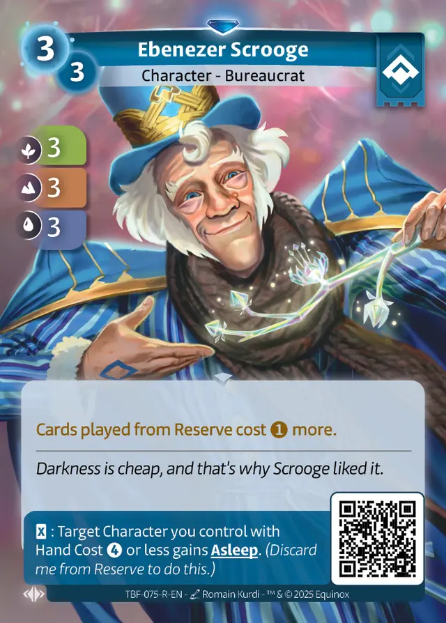 Ebenezer Scrooge is a character from the Charles Dickens novella A Christmas Carol who starts as a cold-hearted and misanthropic miser but eventually changes his perspective. Filled with contempt for the Christmas holiday, he is confronted one night by three spirits – the ghosts of Christmas past, present and future – who help him to see the error of his ways and become a better and more generous man. This iconic Christmas character is described as a wizened, inflexible, lonely and greedy old man who cares for nothing but increasing his own wealth.