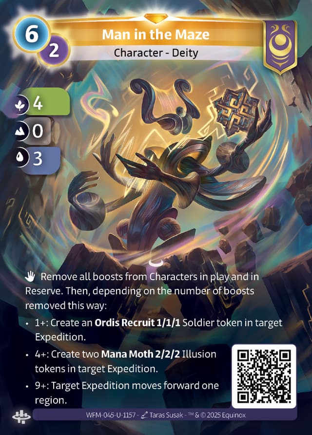 • 4+: Create two Mana Moth 2/2/2 Illusion tokens in target Expedition.