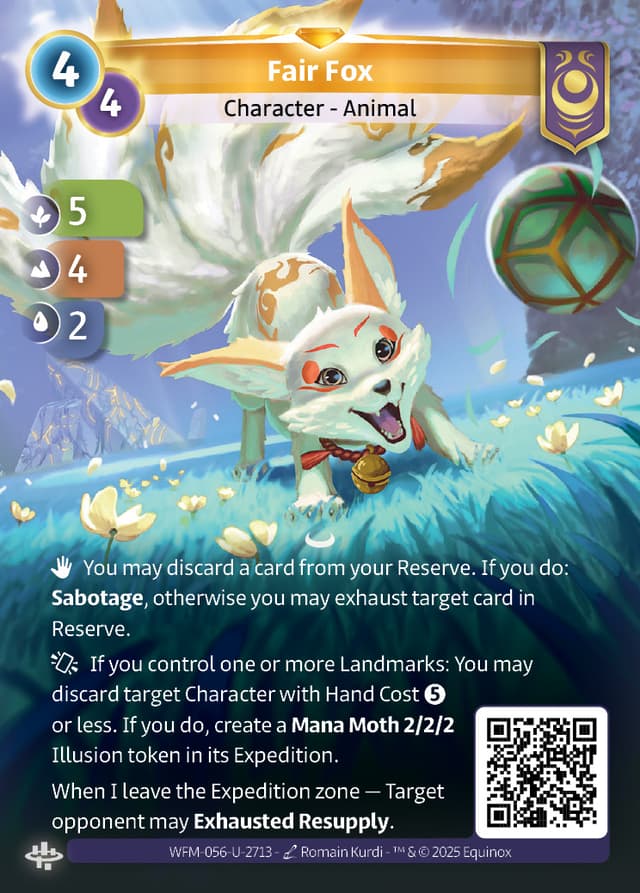 If there's a card in your Landmarks: You may discard target Character with Hand Cost or less. If you do, create a Mana Moth 2/2/2 Illusion token in its Expedition.