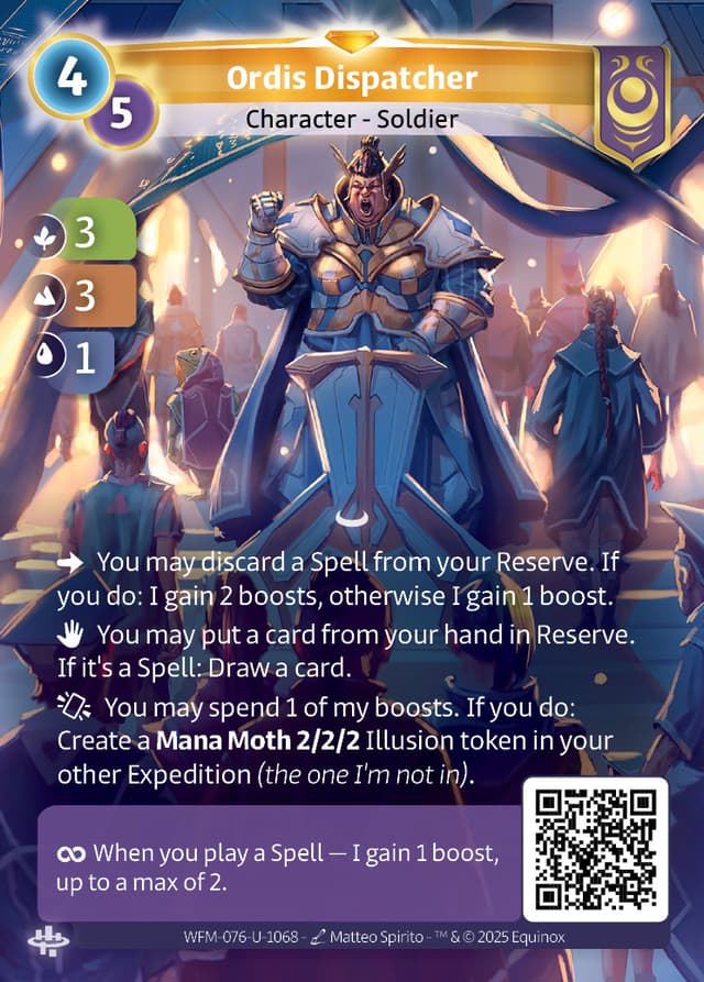 You may spend 1 of my boosts. If you do: Create a Mana Moth 2/2/2 Illusion token in your other Expedition (the one I'm not in).