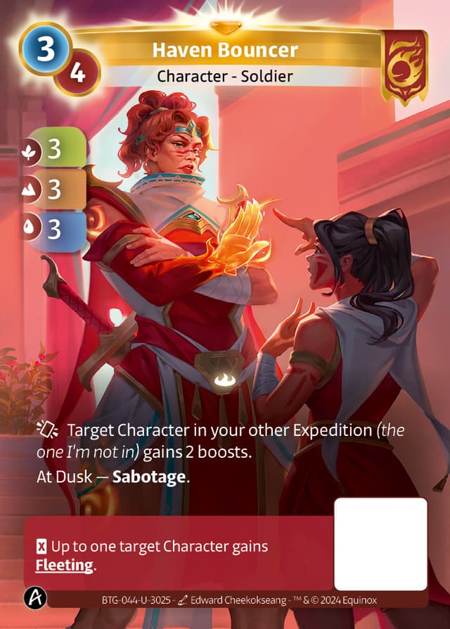 Target Character in your other Expedition (the one I'm not in) gains 2 boosts.