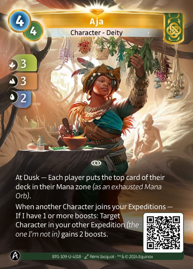When another Character joins your Expeditions — If I have 1 or more boosts: Target Character in your other Expedition (the one I'm not in) gains 2 boosts.