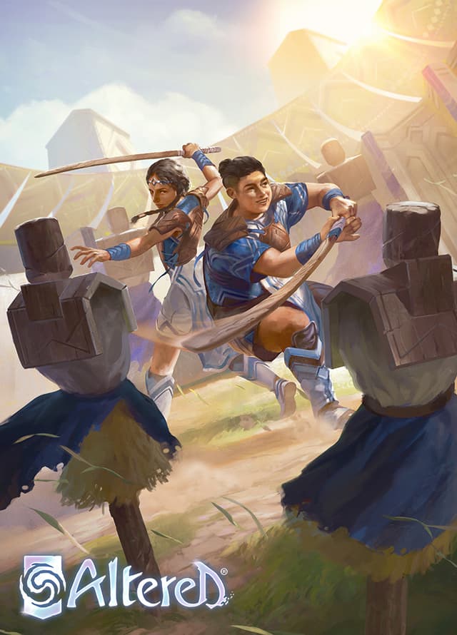 Wingspan lands in the courtyard of the Kurung, folding his wings behind his back as I slide out of the saddle and along his blue plumage. I pat his neck, affectionately ruffle his feathers and stroke his beak. That's when I notice that all the cadets are staring at us instead of completing the maneuvers their instructor has ordered them to do. Just before landing, I had seen them doing routines in pairs. It was an important lesson to know how to fight in pairs or in groups, to ensure that no flank is exposed and that any breach in the defenses is immediately sealed. But it seems their curiosity got the better of their discipline. I watch them staring at my griffon, eyes wide like children. Many of them are still quite young, in fact.