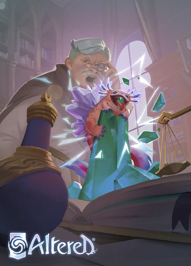 The inside of my helmet is already fogging up as I exit the elevator. I want to scratch, but it's not easy while wearing my full suit. Inside the mine, the air is sticky and saturated with sulfur vapors. The other miners are waiting in their suits, weighed down with bulky gear like jackhammers, shovels and pickaxes. Only the light of our lamps pierces through the darkness, a thousand feet underground. I instinctively try to wipe my forehead, but my hand bangs into my visor. I grumble to myself. Might as well try and get this over with as quickly as possible. I open the cage I brought with me, and the Kelon Elemental shoots out, attracted to the energizing ore. In the darkness of the mine, its skin is almost phosphorescent. All right, little one, get to work. Find us a nice juicy vein.