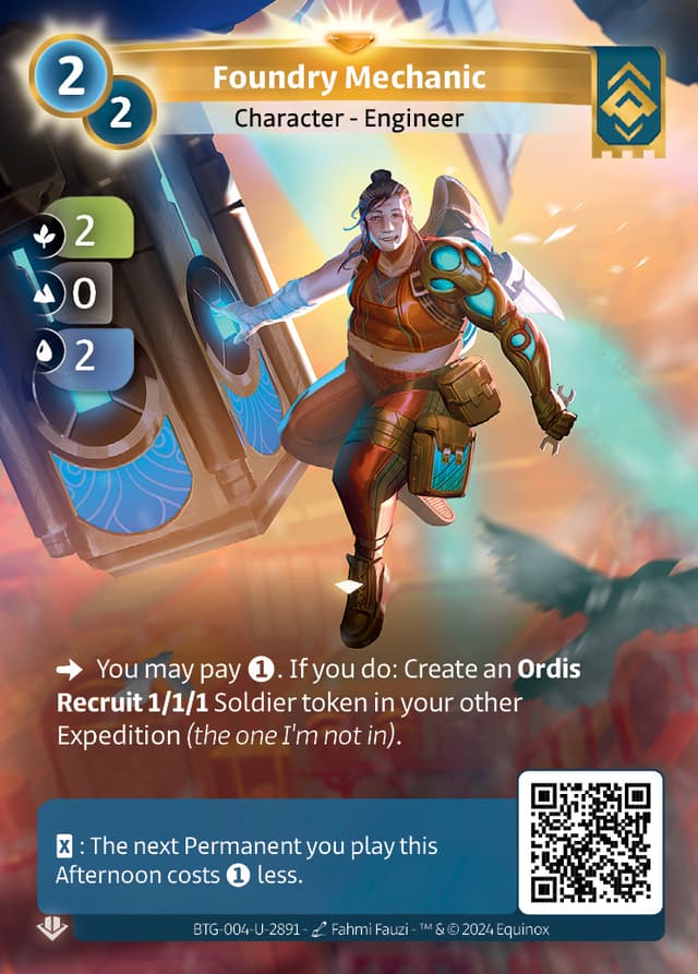 You may pay . If you do: Create an Ordis Recruit 1/1/1 Soldier token in your other Expedition (the one I'm not in).