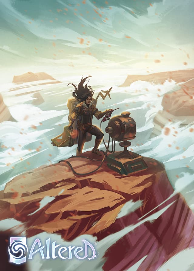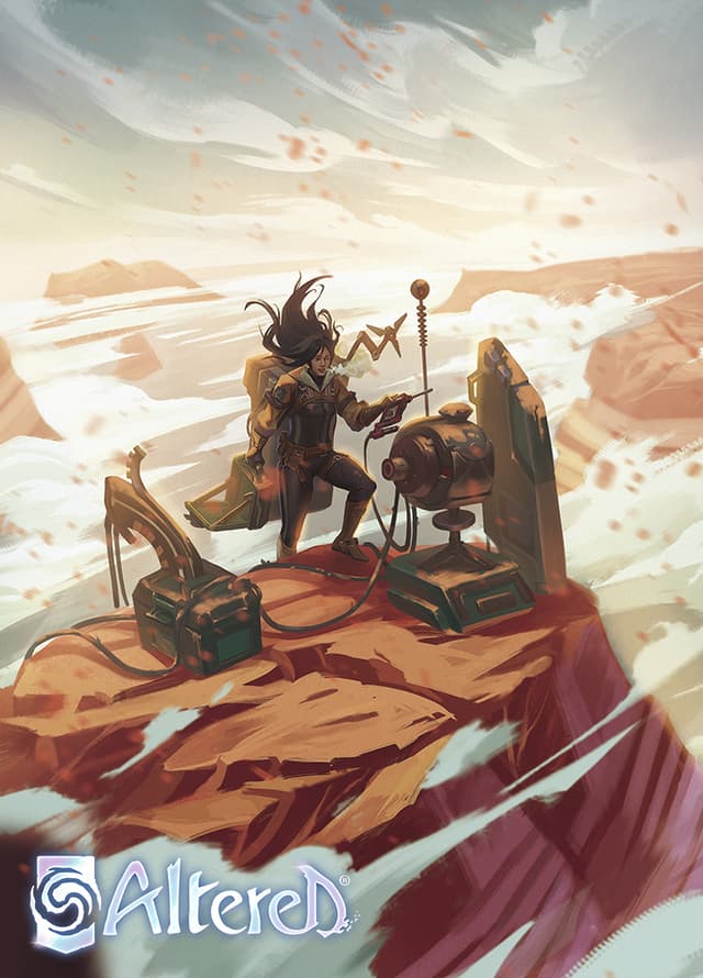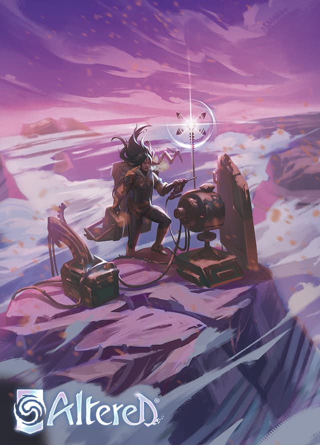 I collapse when I reach the top of the mountain. The Jammer gives me an amused look while she sets up her antenna. She must have arrived a while ago, judging by how far along she is with it. Considering what that climb did to me, I obviously need to do more physical exercise. I take some deep breaths, then take a few swigs of water as I look around. All these landscapes are certainly a change from the Foundry. At this altitude, we're above a sea of clouds, and a few stars are beginning to appear above our heads. Comfortably sitting on a rock, Marmo wags his tail while watching the transmitter. I let out a little grumble. The traitor could have waited for me. After a brief pause, I put down my backpack and take out the rest of the equipment. They could have chosen a summit that was easier to get to. We could have used an aerodyne…