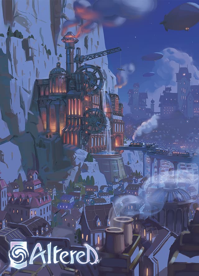 I join the throng, following the tide of mechanics and engineers. The smell of sulfur, steam and steel lingers in the air. As I leave the station with my equipment, I start to hear the clanging of the forges and the clamor of the workshops, while waves of heat from the furnaces hit my face. I see metalworkers pouring molten metal into sizzling molds, while a foreman inspects a batch of mechanical parts. I notice a huge wheel turning within the vault, powered by a river of artificial water, and Kelon cylinders gleam here and there with a blue-tinged glow. Hammers clang all around, pistons roar, and the air is dense with humidity. I smile at it all, knowing that this is where I'll set down my bags and put my tools to good use.