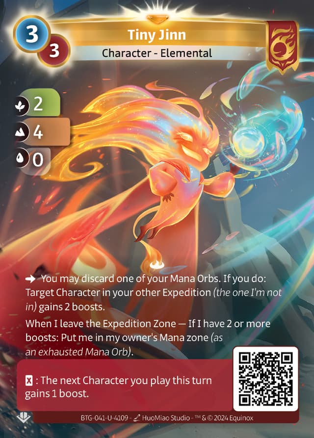When I leave the Expedition zone — If I have 2 or more boosts: Put me in my owner's Mana zone (as an exhausted Mana Orb).
