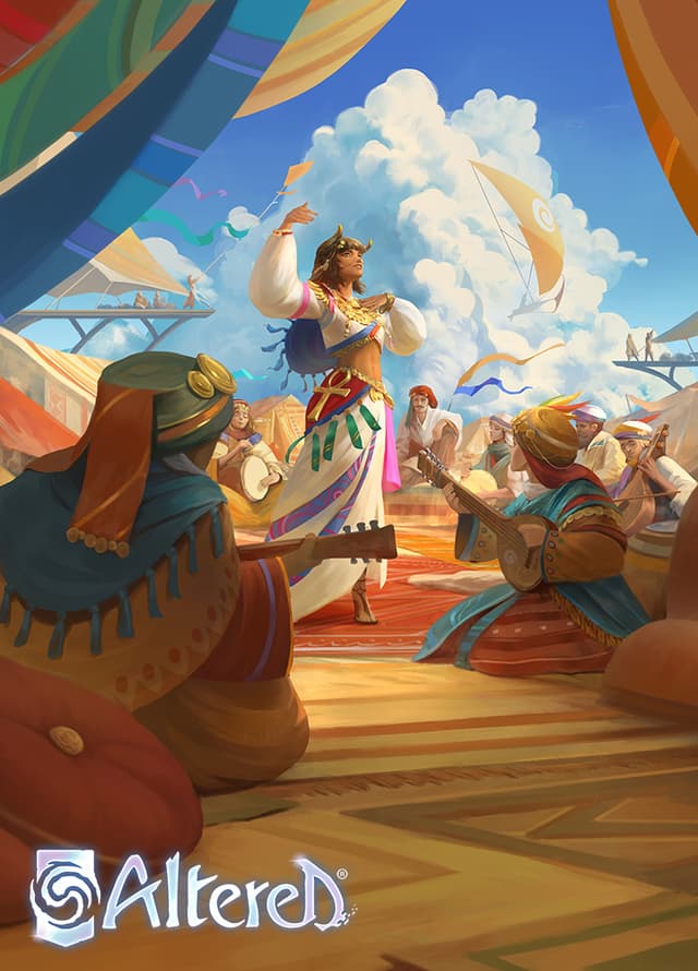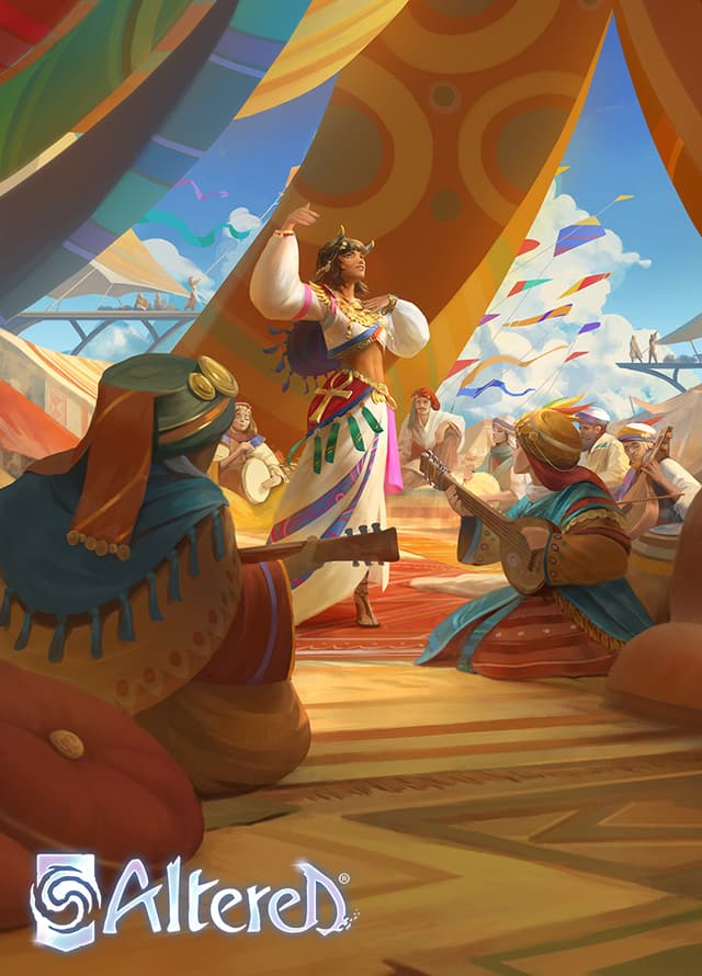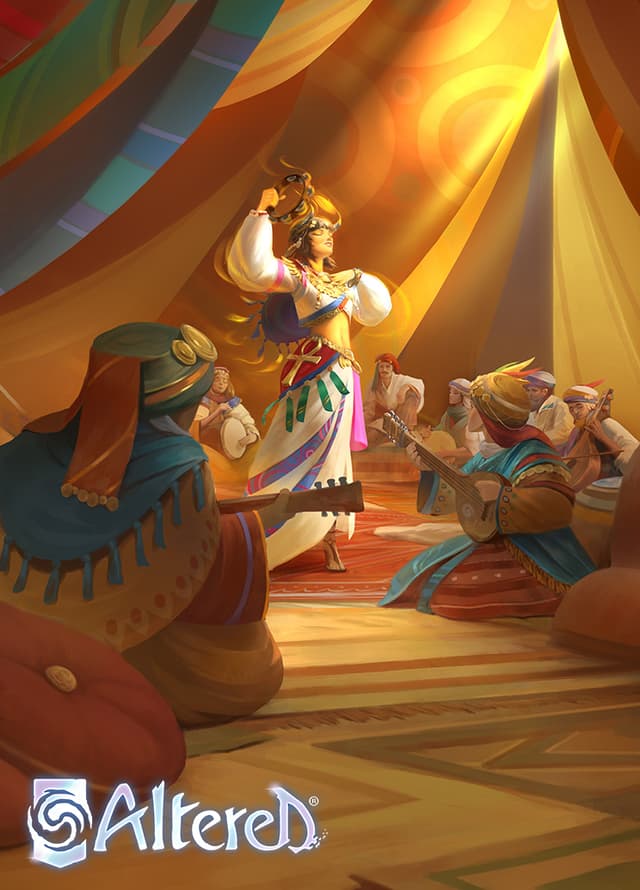 I lift my glass and sit on the handsome man's lap, peeling back my dress to reveal the bare skin of my thigh. I see him blush as I press myself against his chest, whispering my words into the microphone. Around me, the other audience members clap and whistle playfully, enjoying the sight of me shimmying in my alluring outfit under my stage name: Auraq. I stand up and place a foot between his thighs to climb onto the table. With the end of my foot, I push aside a glass, clattering plates and cutlery as I strut among the guests who stare at me with warmth, fascination and even amused grins. But this is just the start of my show, a little appetizer. The melody played by lutes and tambourins quickens and grows louder. By the end of my show, there will be intoxication and jubilation!