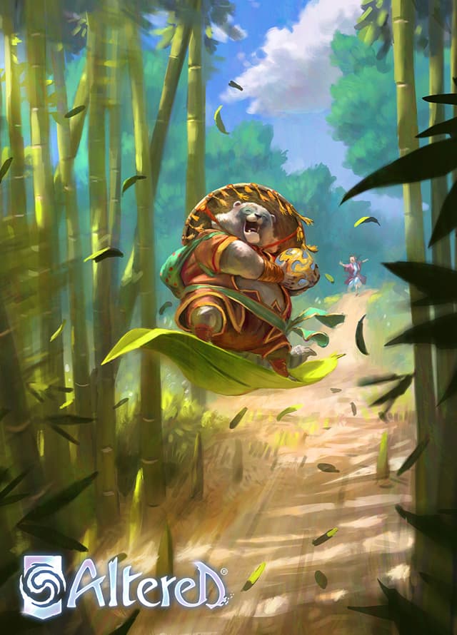 The Tanuki, whose appearance fluctuates between a badger and a raccoon, is a creature from Japanese folklore who features in a wide range of often amusing and extraordinary stories. As a symbol of prosperity and success, it is said to bring good fortune, which is often represented by testicles of disproportionate size. The Tanuki is a mischievous and shape-shifting prankster that resembles a raccoon dog. A master of disguise, it can transform into whatever it wants by sticking a tree leaf on its forehead. It is said that the Tanuki and Kitsune are eternal rivals, always playing tricks on each other.