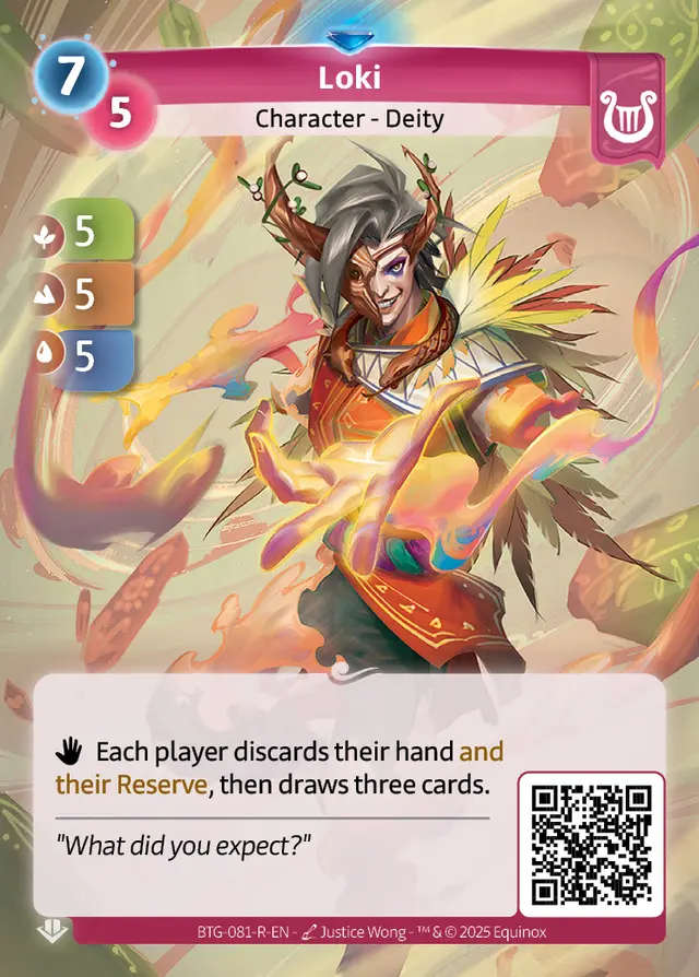 Loki is the son of Fárbauti (a jötunn) and Laufey (a goddess from the Æsir family) and is accepted into the Nordic pantheon by Odin. As a god able to shapeshift at will and conjure illusions, he uses his talents to play tricks and sow discord. He is malicious and impulsive and doesn't care about the consequences of his actions, but his tricks almost always end up backfiring on him. Even though his many misdeeds cause problems, they do sometimes benefit his peers. For example, that's how Thor inherited his famous hammer, Mjöllnir.