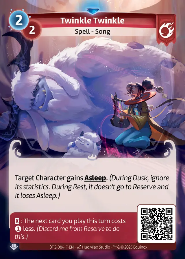 Target Character gains Asleep.(During Dusk, ignore its statistics. During Rest, it doesn't go to Reserve and it loses Asleep.)