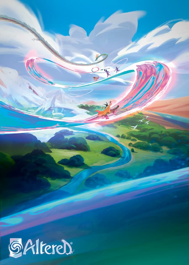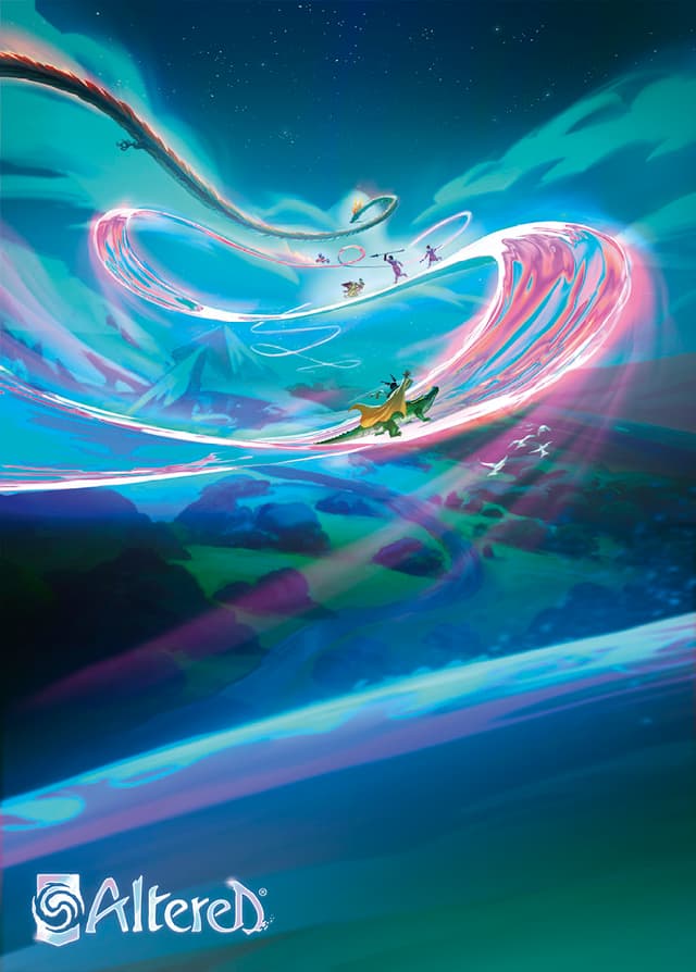 So, I concentrate again, focusing on an iridescent road, a fiery ribbon with colors that intertwine to form a bridge in the sky... And this time it works! No little green man, no red beard or four-leaf clover, but instead a rainbow winding between the clouds. All right, quick, let's go! I signal to my Eidolons to jump onto it so its currents can carry them to my little Alter Ego. One by one, I watch as they're swept away on the pink and blue torrents, slipping down the sky river like they're on a water slide, slaloming between the stars and lightning. Perched on her clockodile, the Eidolon of Fen's friend Aru tucks a Mush under her arm and jumps into the torrent. I hope they get to the other side safe and sound, because it won't be easy to fish them out if they fall overboard.