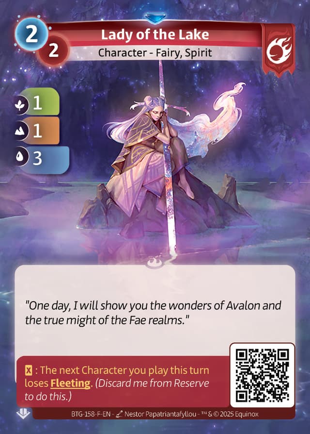 I open my mouth and let Senka burst out of me in thick mauve plumes. My nighthawk spreads its wings while its alabaster mask solidifies to cover its head. I feel the Mana flowing through me like pure spring water, and I immediately channel it into the Effigy I have placed at my feet. The Megalith is shaking in front of me. The ground trembles, and the Tumult oozes from the floating crystal. I need to send it back to its age-long slumber in a hurry. And for that, I call on one of its guardians. The statuette of Nimue shatters, and I feel her presence burst forth from the microscopic breach I've opened to the Empyrean. The Lady of the Lake speaks into the world, holding in her hand Excalibur, the legendary sword of the sleeping king. The Eidolon turns to me, then to the meteor of Aether.