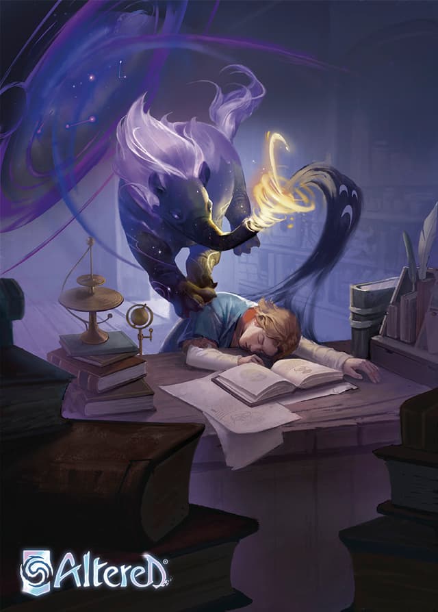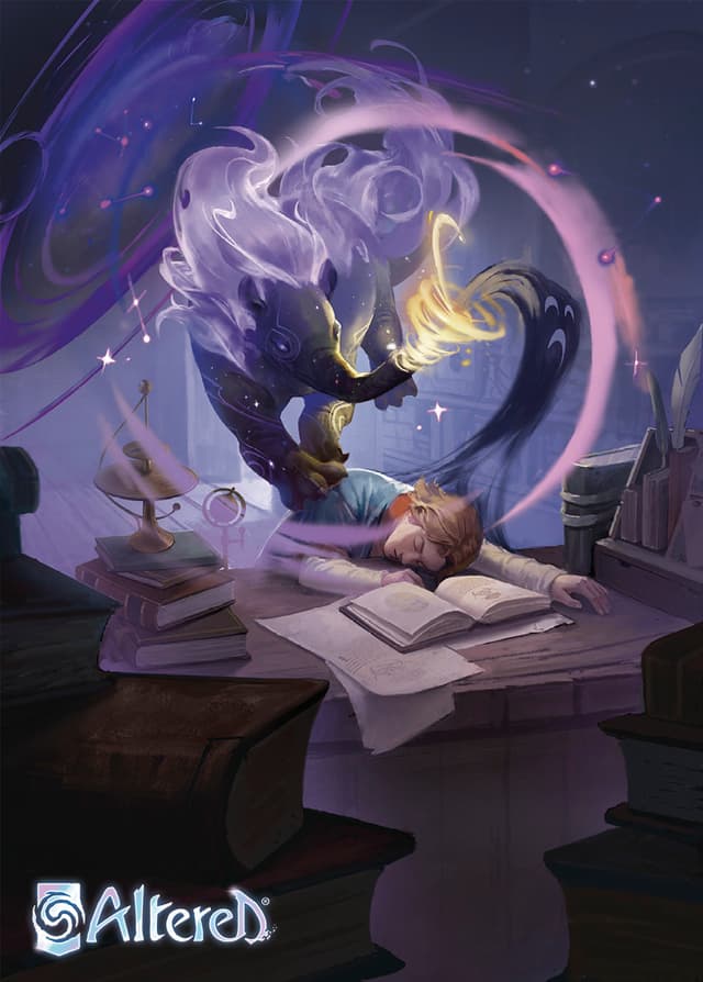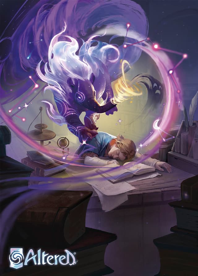 Floating above the little girl, Baku continues to use its trunk to suck up the stream of ideas flowing endlessly from her body. The Eidolon is ingesting these concepts to stop them from grafting onto our reality, slowly digesting them to purge the patient's psyche. The relief will only be temporary, of course. She is suffering from Remanence, an affliction that overwhelms all those who flirt too much with the imaginary. No cure exists for this ailment. Her only reprieve comes from this draining process, which cleanses her soul to a certain extent. But the flow is already drying up. What was a torrent is now just a trickle flowing from the pores of her skin, mouth and nostrils. And that's just as well, because I get the sense that Baku is approaching the limit of how much he can ingest. If necessary, I'll take over if he's forced to leave me some leftovers...