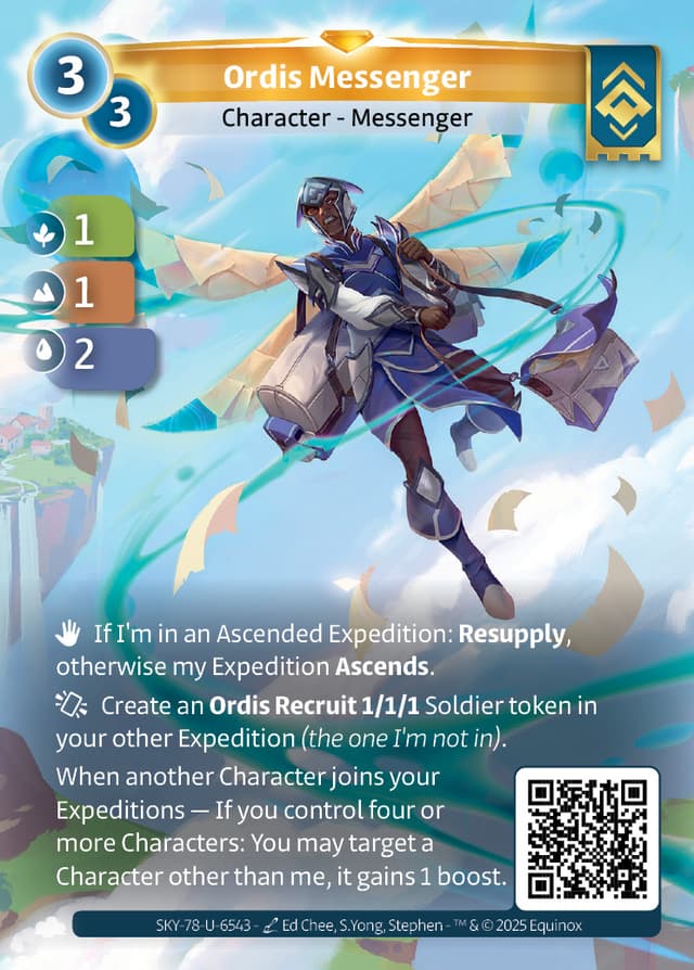 Create an Ordis Recruit 1/1/1 Soldier token in your other Expedition (the one I'm not in).