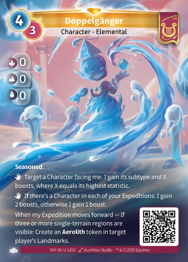 When my Expedition moves forward — If three or more single-terrain regions are visible: Create an Aerolith token in target player's Landmarks.
