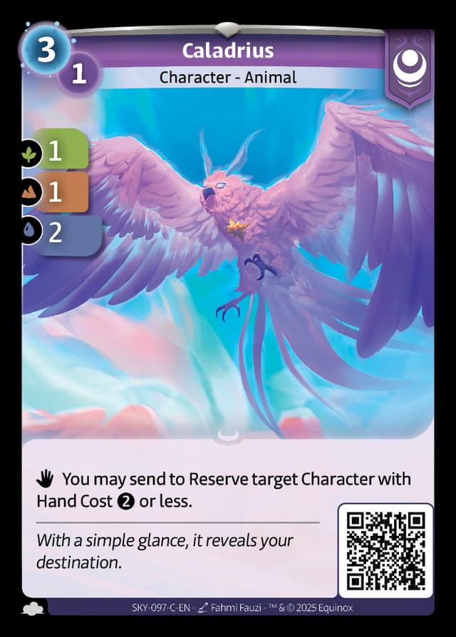 The Caladrius is a bird with snow-white feathers from medieval European mythology. With a single look, it was said to be able to cure a sickness or confirm the sick person's demise. If it looks into your face for a while, you will live; if it looks away, you will die.