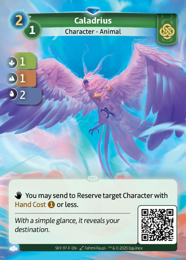 The Caladrius is a bird with snow-white feathers from medieval European mythology. With a single look, it was said to be able to cure a sickness or confirm the sick person's demise. If it looks into your face for a while, you will live; if it looks away, you will die.