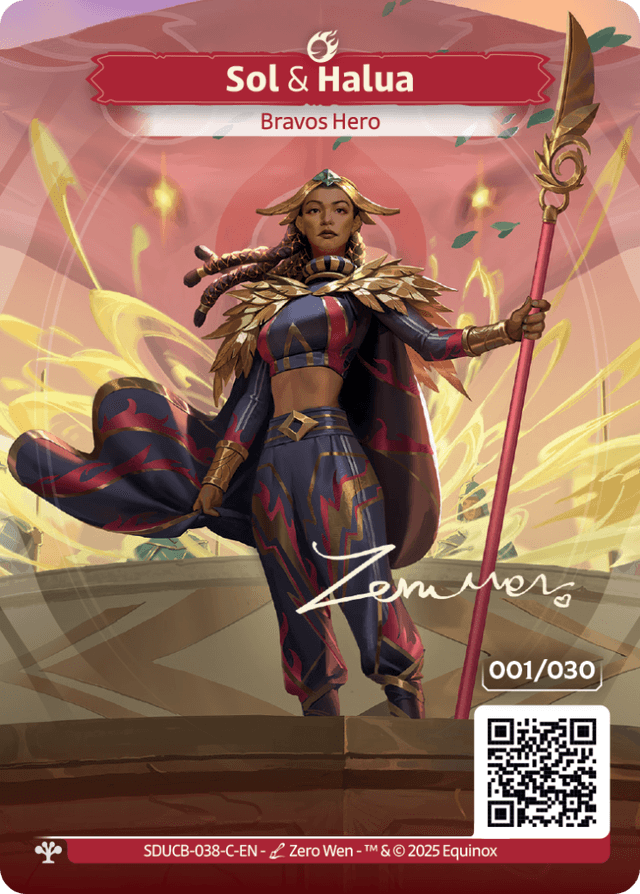For the most dedicated collectors among you, we are also introducing our first Serialized cards: a total of 30 numbered cards per Hero in the set, also exclusive to Collector Boosters. These are Full-Art Emissary versions of the Seeds of Unity Heroes, serialized (meaning only one unique copy of each number exists), and signed with the golden digital signature of their artists.