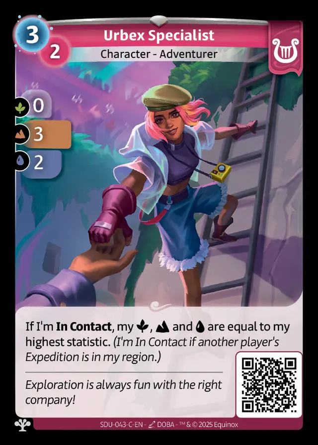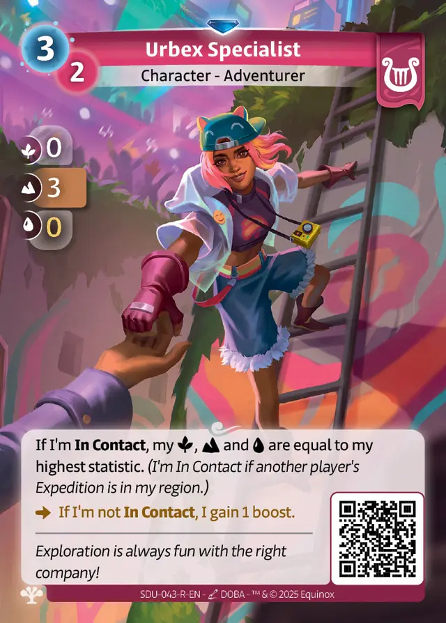 The lore highlights the meeting between the Lyra and the Reka people, which inspired the creation of a new keyword: In Contact. The Urbex Specialist for instance becomes more powerful when her Expedition is located in the same Region as another player.