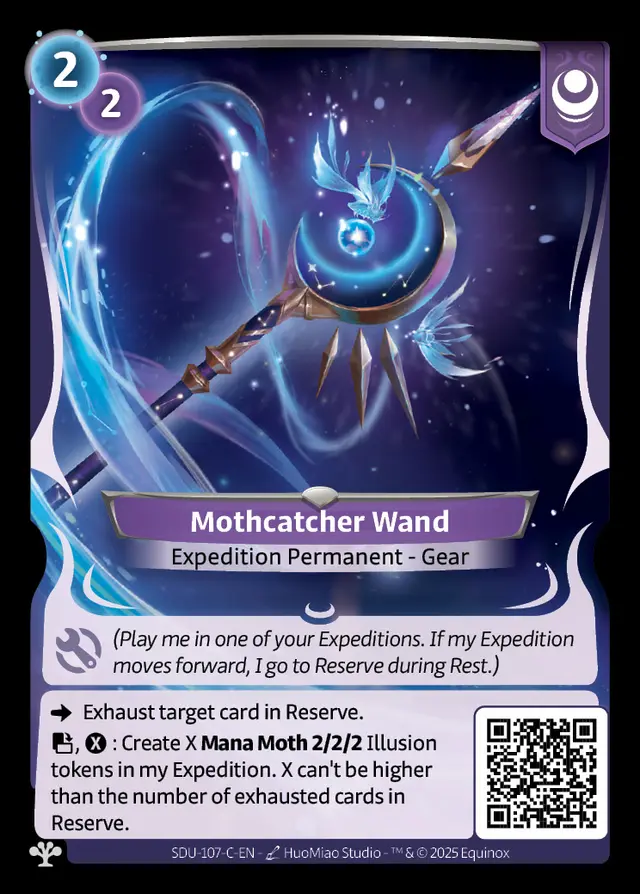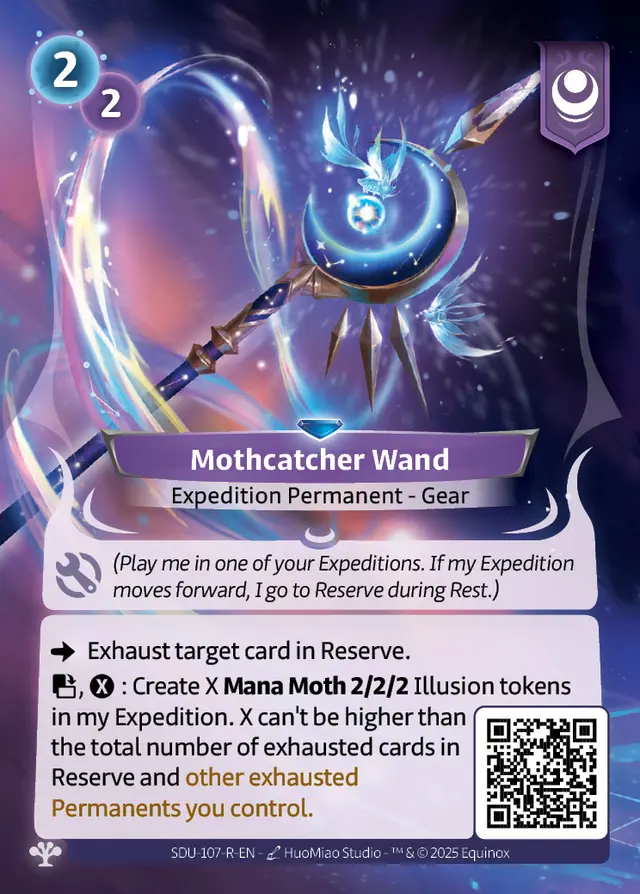The faction also explores new mechanics around exhausting cards in the Reserve—whether their own or those of their opponent! This specialization makes it particularly interesting in the Limited format, where it combines very well with the Axiom faction. Mothcatcher Wand, for example, allows you to benefit twice from its effect when used alongside the Axiom Hero Della & Bolt.