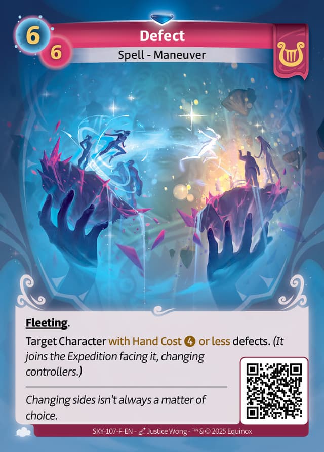 Defect is the flagship card for a new keyword, also named Defect. This ability does what it says on the tin: that Character joins your Expedition, betrays its faction and will help you move forward, blocking the progression of its previous friends.