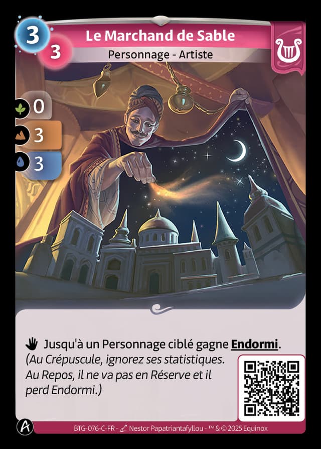 L'Eidolon apparaît au milieu du dortoir dans un nuage de poussière dorée. Dehors, la nuit est tombée, et je peux déjà entendre les éclats de rire, les sons des farandoles. Alors que je commence mon récit, des silhouettes fantomatiques apparaissent, façonnées de sable, de rêves à demi-ébauchés. Si je suis le conteur et le narrateur, le Marchand de Sable est le metteur en scène et le chef décorateur. Une pincée de silice fait apparaître des palais — celui de l'Astérion vers lequel nous voguons présentement sur le chemin de l'exil. Un soupçon de songes fait jaillir des cathédrales de verre et de verdure, des champs de lances et de métal. Peu à peu, les regards fascinés des enfants se font de plus en plus lourds. Alors que les grains se muent en champ de bataille, les marmots se mettent eux aussi à lutter de toutes leurs forces pour rester éveillés. Mais déjà, je peux voir les premières victimes, ceux qui ont laissé leurs paupières se fermer, las de ferrailler contre le sommeil.