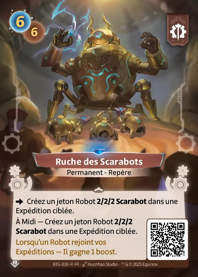 J'écarquille les yeux en pénétrant dans la sphère alvéolée. Elle était plus imposante que les autres, et tous les Scarabots semblaient converger ici. Mais je m'attendais pas à ça. Au milieu de la capsule métallique, un Scarabot aux dimensions colossales est avachi, comme s'il souffrait. Des dizaines et des dizaines d'insectes robotiques s'affairent et se relaient autour de lui, comme s'ils étaient en train d'en prendre soin. Une complainte métallique résonne au sein de l'anfractuosité, et son compartiment arrière s'ouvre pour déverser de nombreuses boules bleutées. Euh... c'est vraiment ce que je crois ? Marmo renifle le tas de perles. Quelques Scarabots le poussent gentiment pour récupérer les billes et vérifier qu'elles sont en bon état. Il y en a d'autres qui apportent du Kélon liquide au mastodonte, comme pour le nourrir gorgée après gorgée.