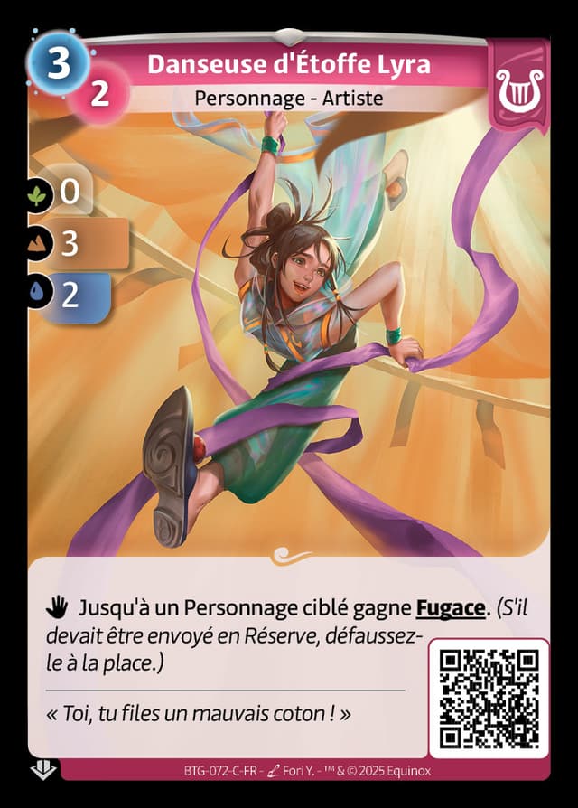 Jusqu'à un Personnage ciblé gagne Fugace.(S'il devait être envoyé en Réserve, défaussez-le à la place.)