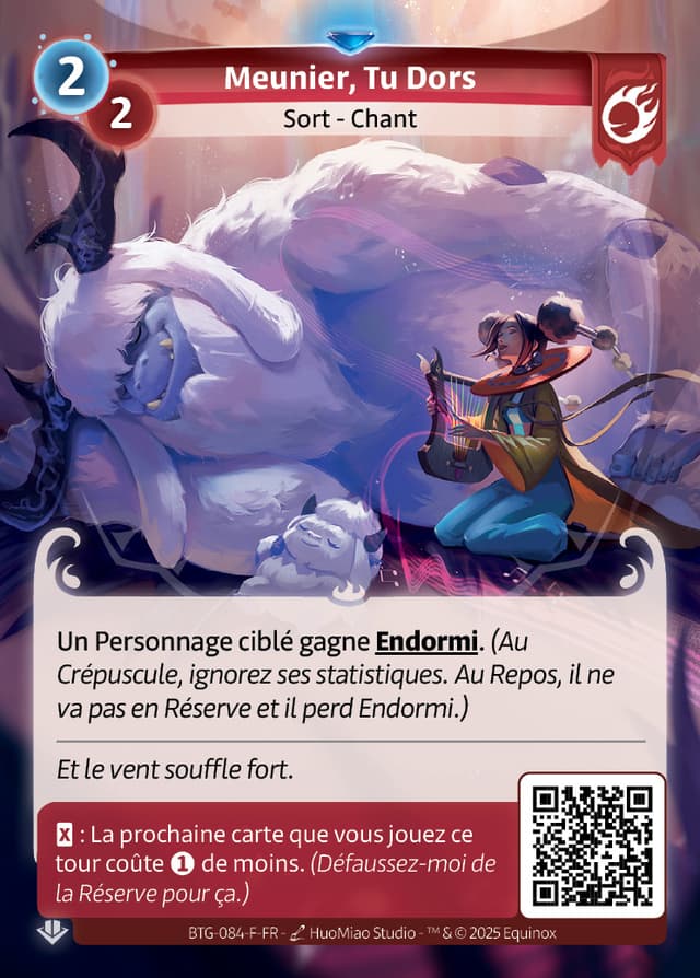 Un Personnage ciblé gagne Endormi.(Au Crépuscule, ignorez ses statistiques. Au Repos, il ne va pas en Réserve et il perd Endormi.)