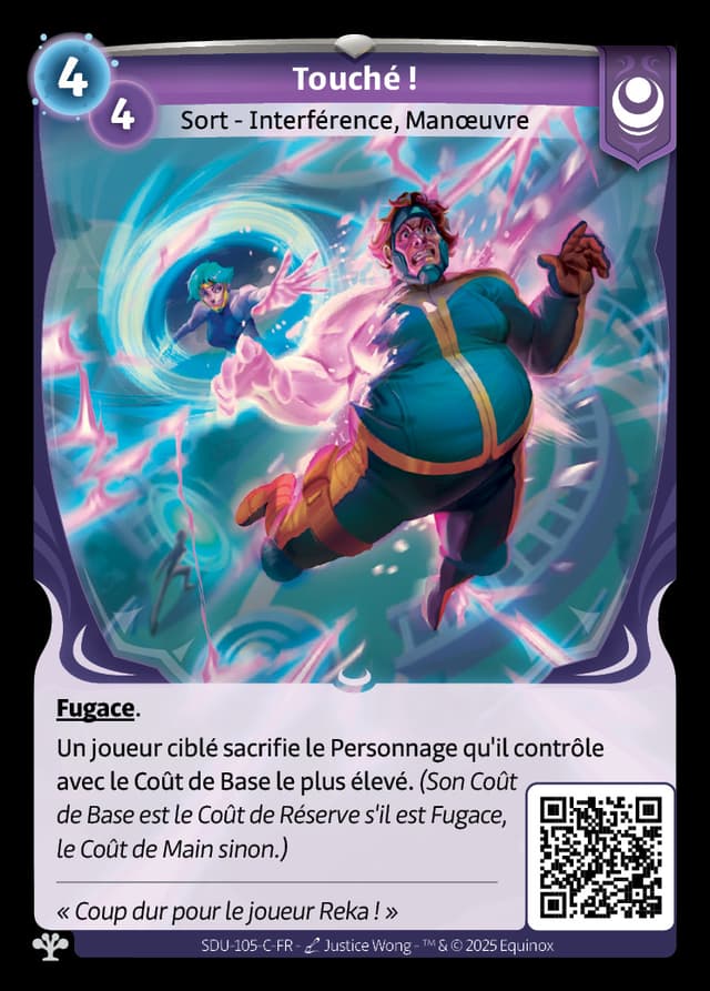 Un joueur ciblé sacrifie le Personnage qu'il contrôle avec le Coût de Base le plus élevé.(Son Coût de Base est le Coût de Réserve s'il est Fugace, le Coût de Main sinon.)