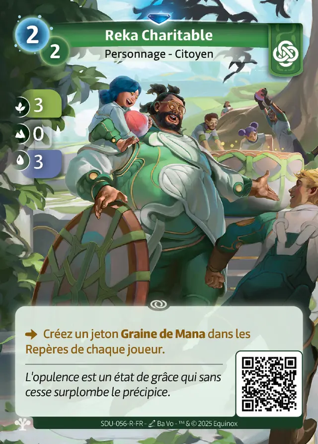 Pour accomplir cette stratégie, vous pourrez faire piocher ou ravitailler votre adversaire, mais aussi générer et offrir des Graines de Mana, un nouveau permanent qui permet de redresser du mana déjà utilisé. Ces dons vous donneront accès à des personnages aux statistiques puissantes, ou à des effets renforcés grâce à votre Héros. Par exemple, Charitable Reka Rare, vous permet de profiter, en plus de statistiques puissantes, de deux graines de Mana avec Turuun. En contrepartie, il demande d’en offrir une à son adversaire. Certaines cartes déjà connues de Beyond the Gates pourraient bien aussi se révéler utiles comme Fille d’Yggdrasil ou encore Kitsune pour ne pas les citer !