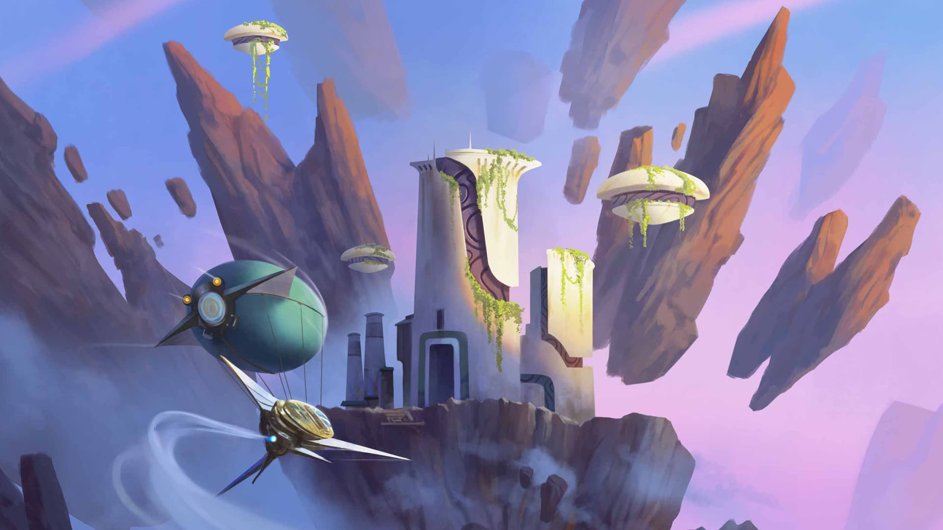 La destination se rapproche à vue d'œil : une petite île volante du Quadrant Pélagonien. Les autres participants à cette expédition s'agitent dans l'embarcation mécanique mise à disposition par les Axiom. Les premiers bâtiments en ruine apparaissent enfin, et quelques curieux se lèvent de leur siège tandis que des murmures parcourent l'assistance. C'est toujours excitant de découvrir les traces et vestiges d'une activité humaine, ces inconnus qui nous ont précédés dans ces lieux.